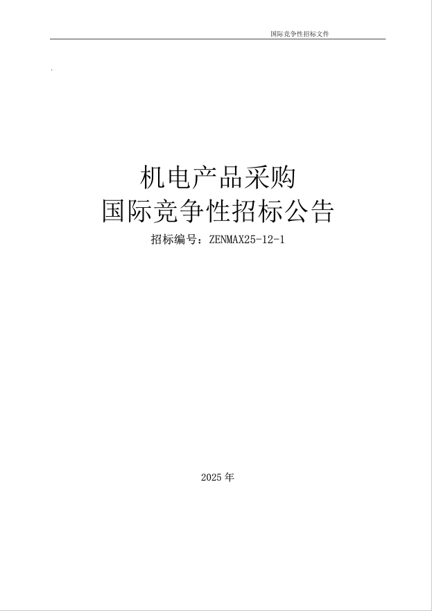 機(jī)電產(chǎn)品采購國際競爭性招標(biāo)公告